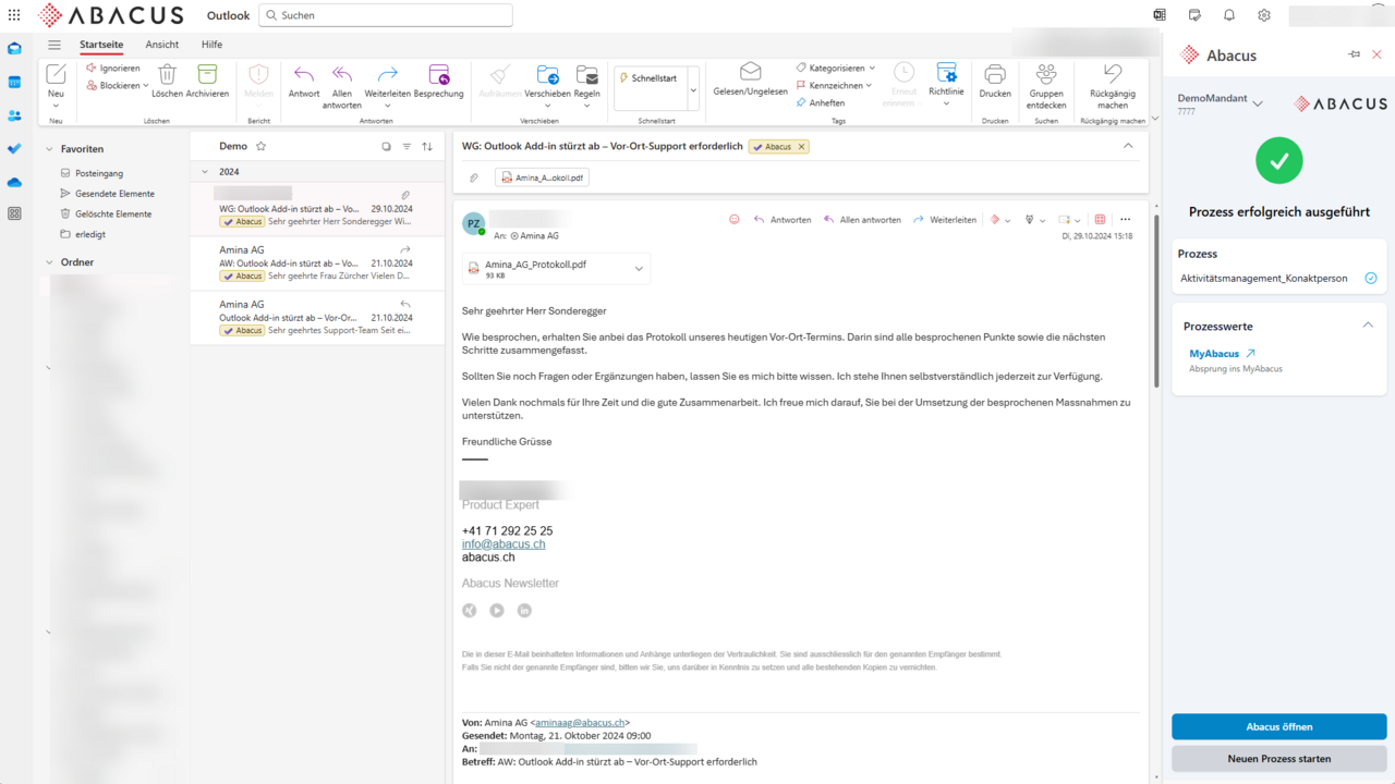 - Prozess im Abacus direkt aus Outlook für eine oder für mehrere E-Mails gleichzeitig starten