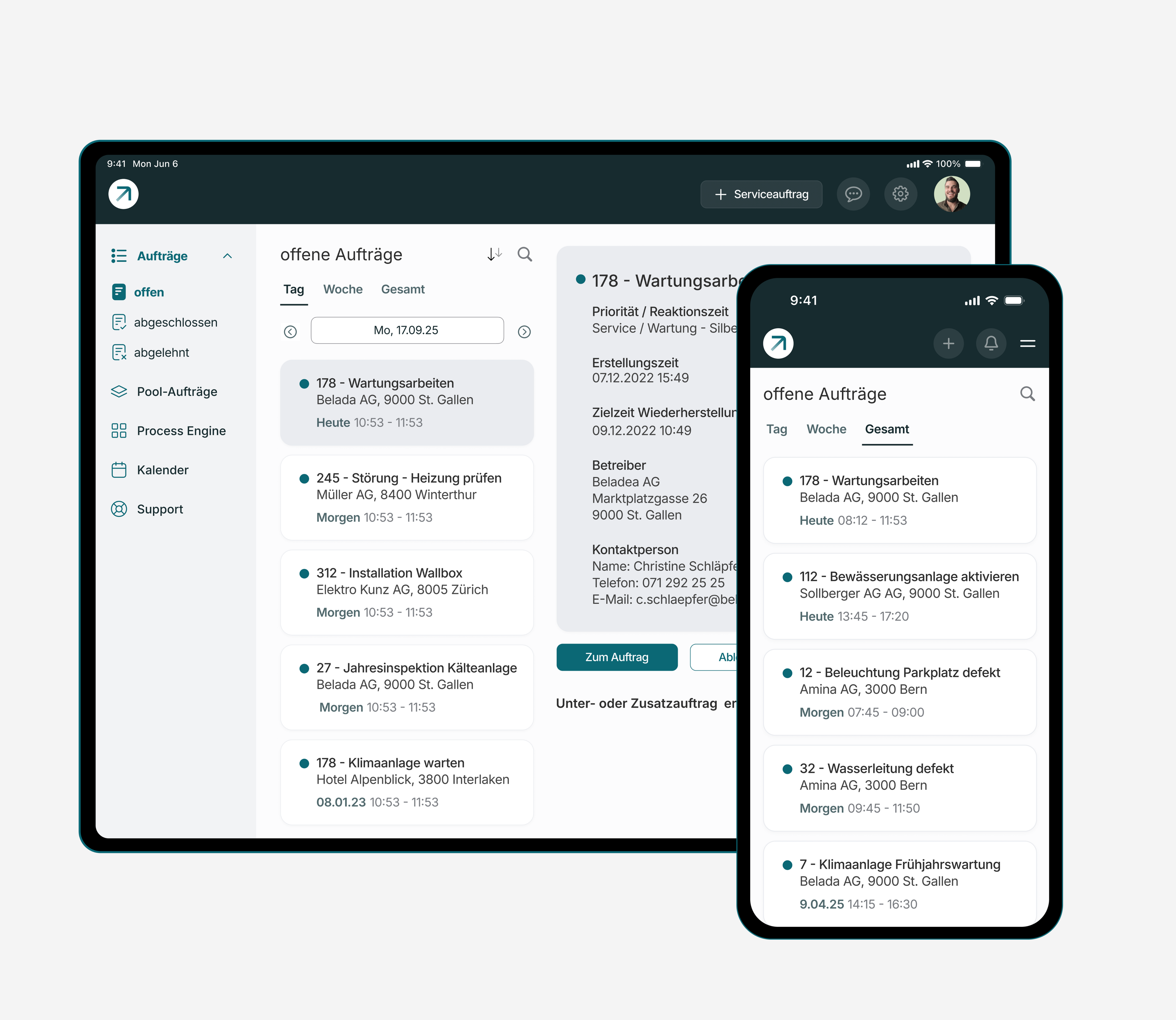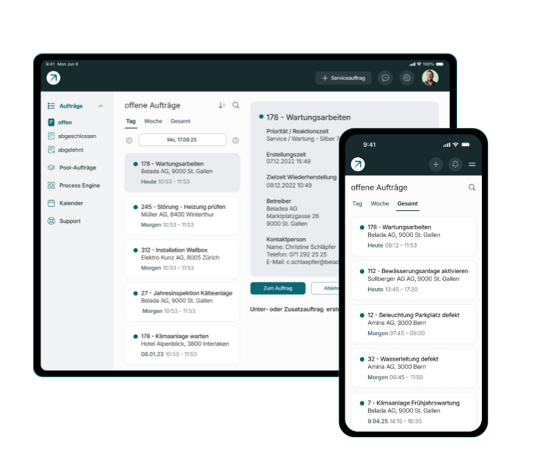 Mit AbaSmart AI geniessen Servicetechniker maximale Flexibilität und Effizienz, da sie jederzeit und überall auf alle Serviceaufträge zugreifen können – unabhängig vom genutzten Endgerät oder Betriebssystem.