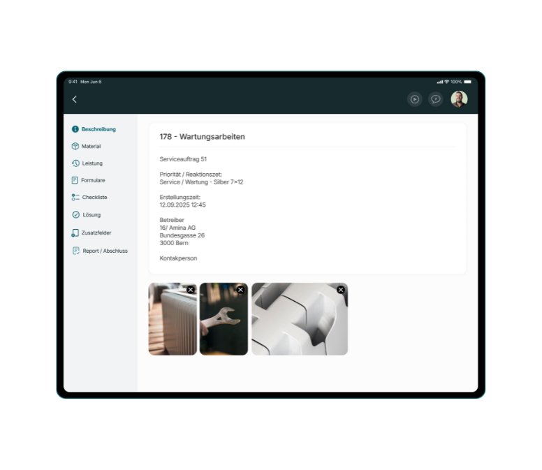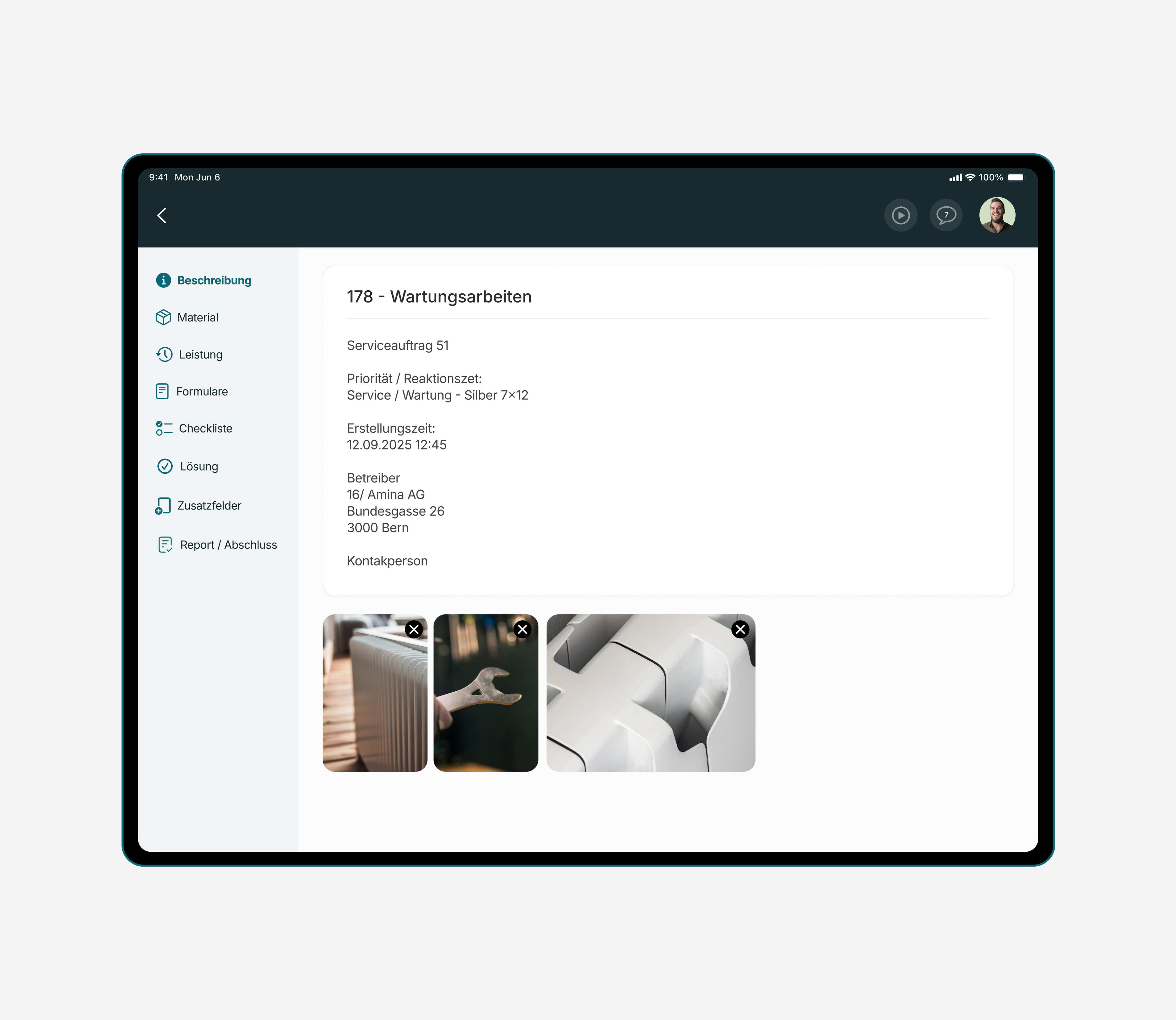 AbaSmart AI begeistert mit Funktionen wie Push-Benachrichtigung beim Eintreffen neuer Serviceaufträge, Echtzeit-Datenübertragung und einer flexiblen Kommentarfunktion. Darüber hinaus können Servicetechniker die Zusammenfassung eines Serviceauftrags direkt in der App aufrufen und digital vom Kunden unterschreiben lassen. Zusätzlich können Bilder, Skizzen und Checklisten direkt aus der App erfasst, bearbeitet und an das System übermittelt werden.
