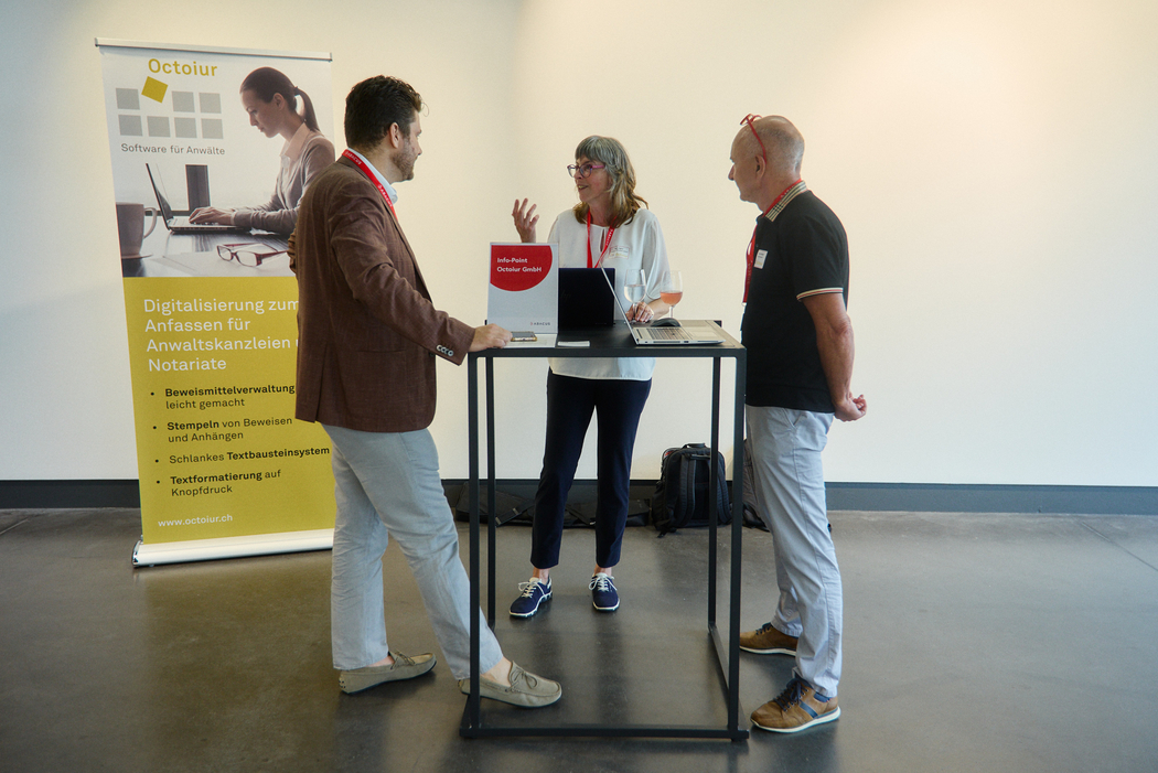 Der Höhepunkt für viele war die Software-Präsentation von Valmira Saiti und Raffaelle Grillo: Sie zeigten anhand von einem einfachen Fall im Arbeitsrecht live, wie neue Tools die Digitalisierung in Kanzleien greifbar und effizient machen.