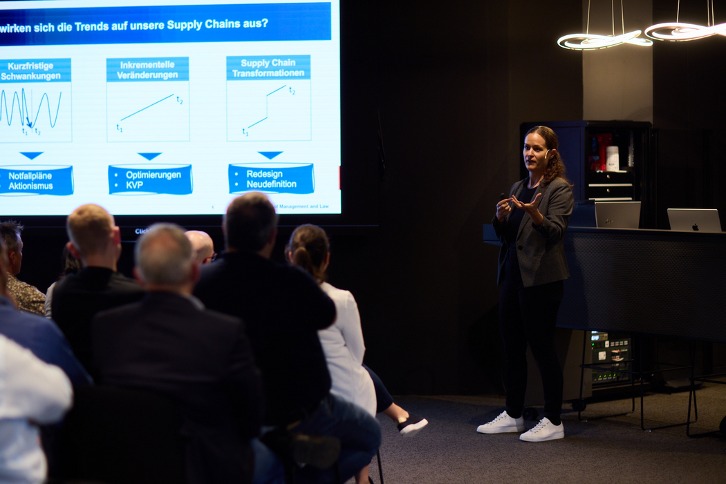Ein weiterer Höhepunkt war die Speech „Supply Chains erfolgreich transformieren“. Dr. Judith Paulus zeigte, vor welchen Herausforderungen moderne Lieferketten stehen – insbesondere im Hinblick auf Resilienz, Nachhaltigkeit und die fortschreitende Digitalisierung. Anhand einer Fallstudie machte sie deutlich, dass tiefgreifende Veränderungen neue Denkansätze erfordern und oft anspruchsvoll umzusetzen sind.