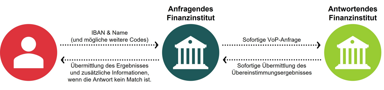 VoP ist ein Abgleichmechanismus, der vor Ausführung einer Zahlung prüft, ob Name und IBAN zusammenpassen. Das anfragende Finanzinstitut sendet eine Anfrage an die Empfängerbank, die umgehend eine der folgenden Antworten zurückgibt: