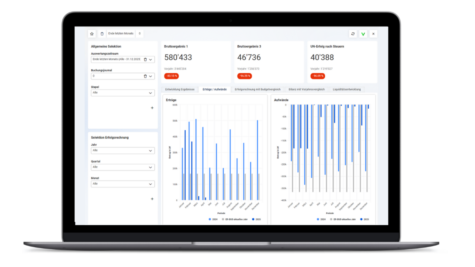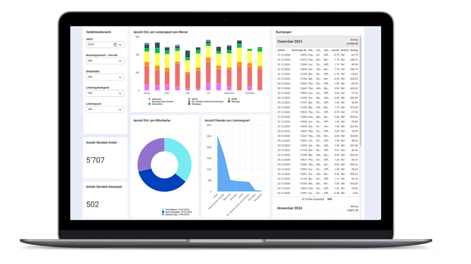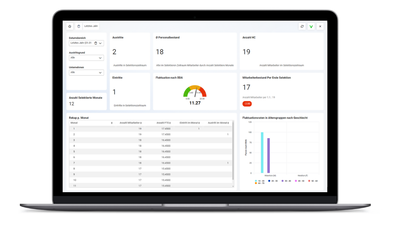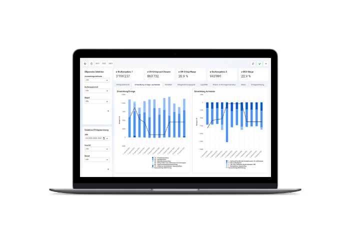 Mit interaktiven Dashboards und klaren Diagrammen haben Sie Ihre wichtigsten Kennzahlen jederzeit im Blick. Komplexe Daten werden anschaulich aufbereitet, sodass Sie sofort erkennen, wo Ihr Unternehmen steht.