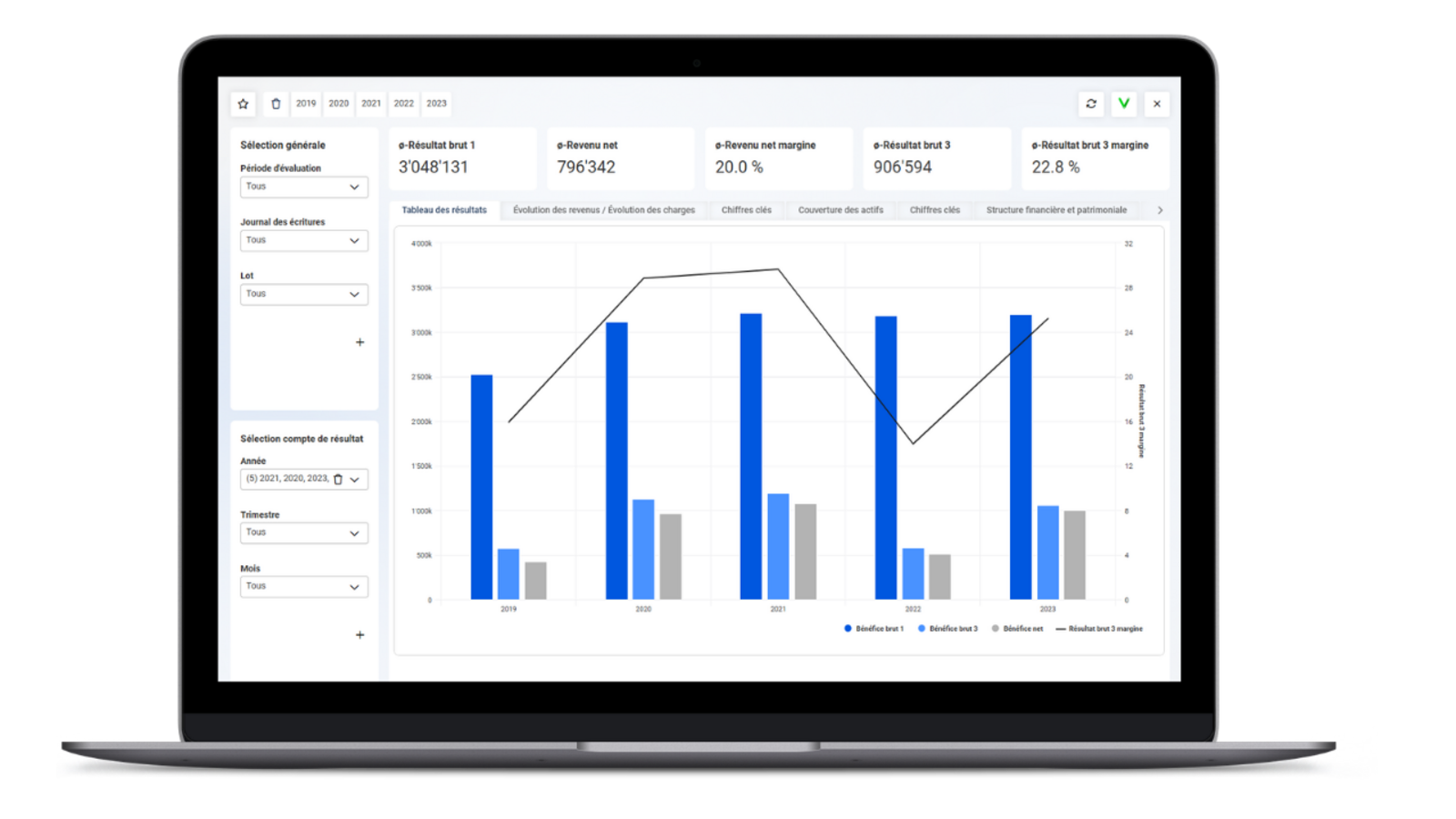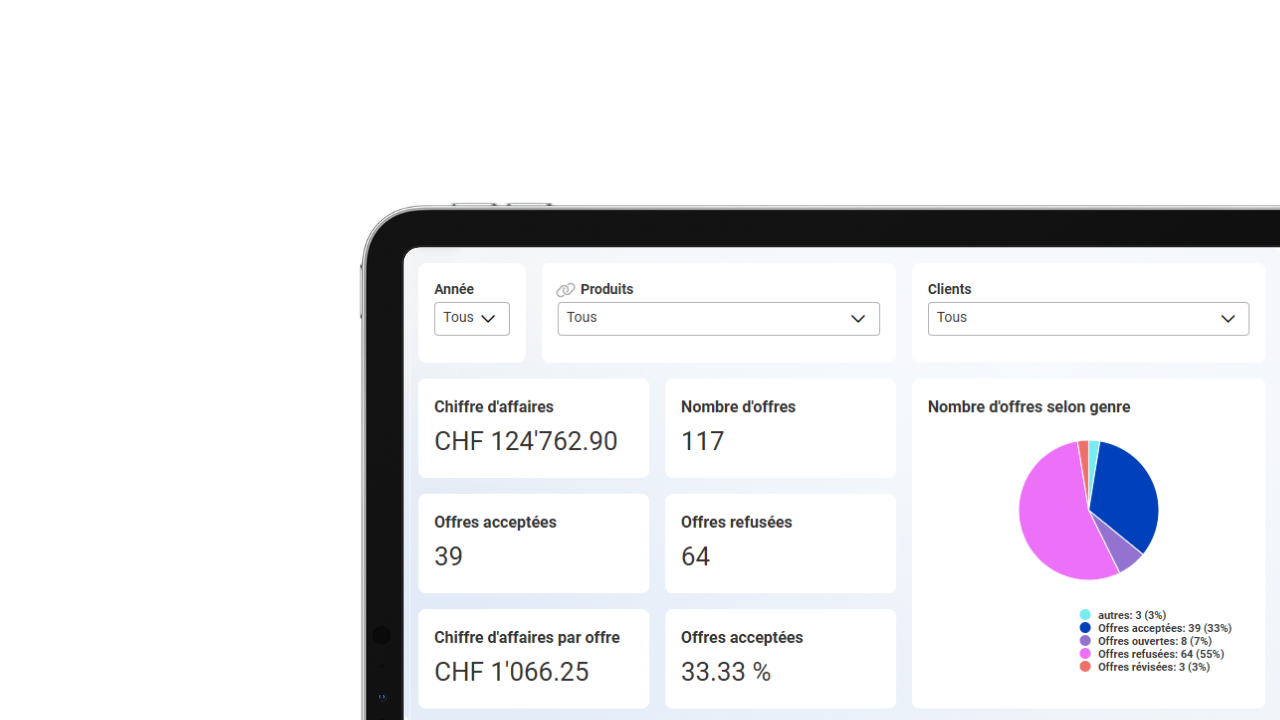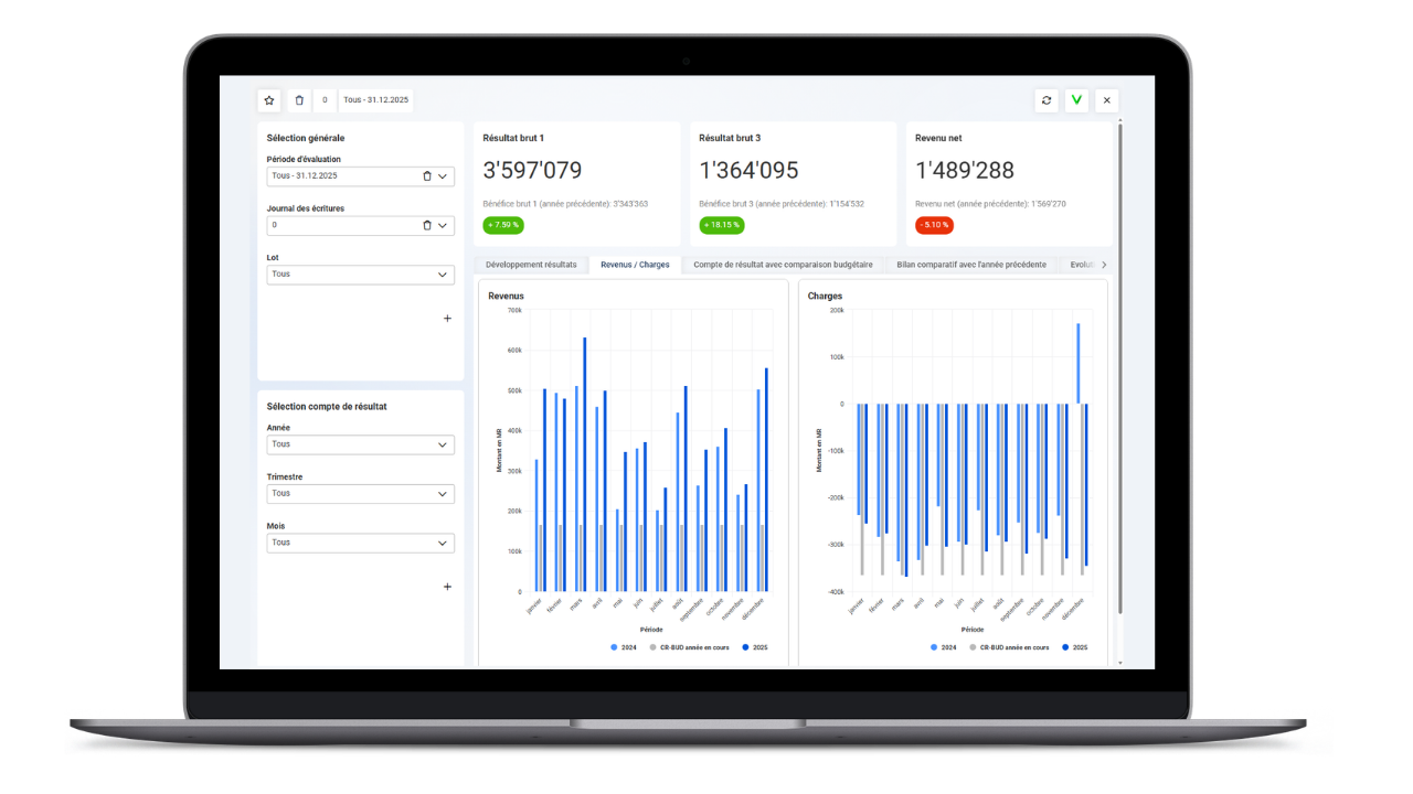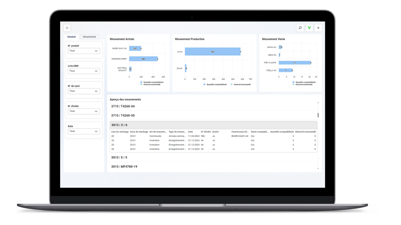 Prenez des décisions stratégiques basées sur des données fiables et actualisées. Grâce à la mise à jour automatique, vous réagissez immédiatement aux évolutions de votre activité.