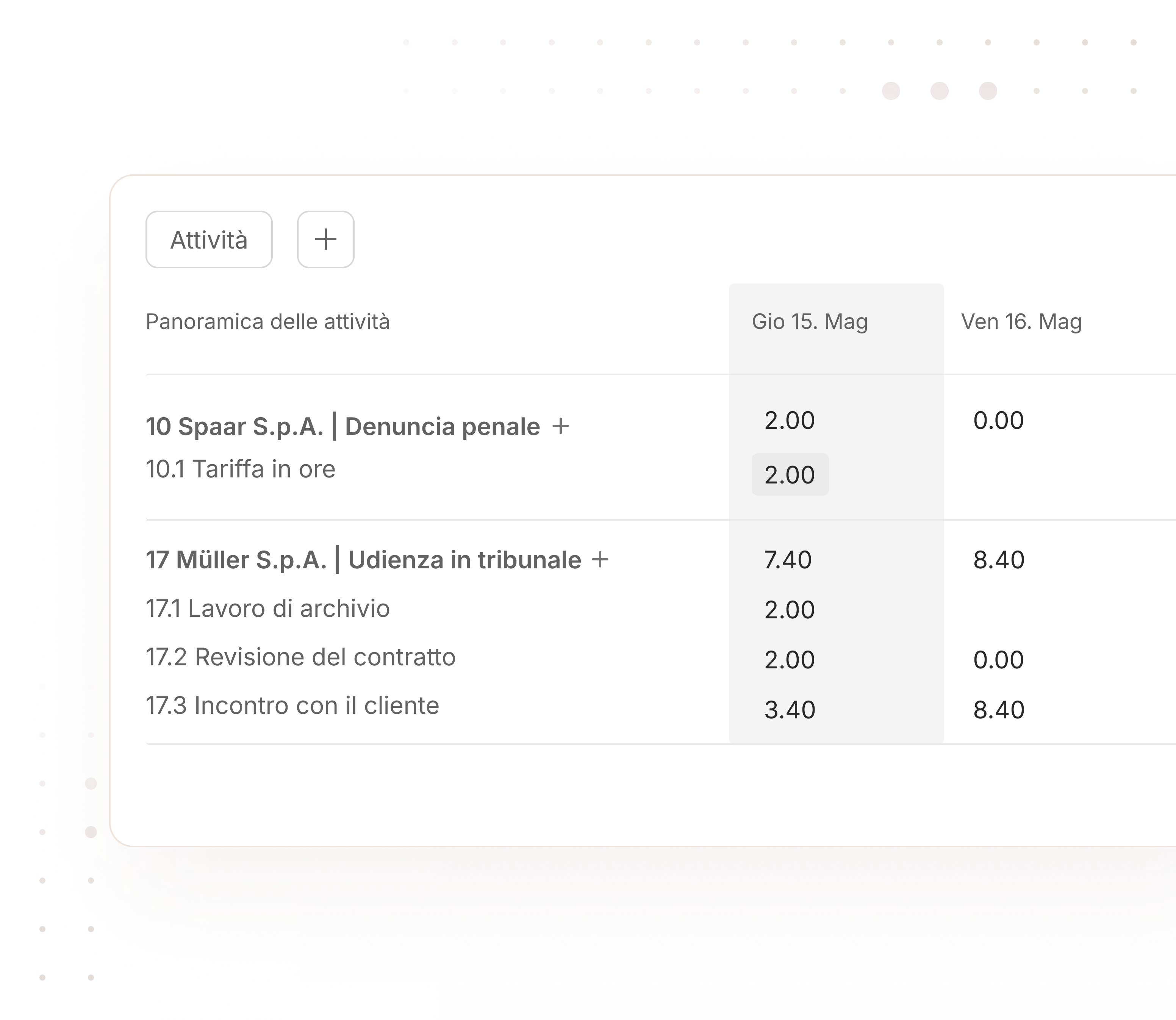 LawLite riunisce tutti i flussi di lavoro essenziali: dall'assegnazione dei mandati, alla loro gestione e fatturazione, fino ad arrivare al controlling.